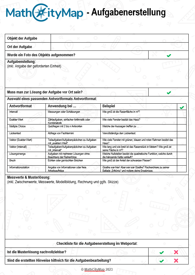 Mit den Schüleraccounts von MathCityMap kannst du deine Lernenden eigene Outdoor-Aufgaben erstellen lassen. Neben dem klassischen Ablaufen eines Mathtrails ergibt sich dadurch eine besondere Möglichkeit, die mathematische Brille aufzusetzen. Hier findest du eine Schritt-für-Schritt-Anleitung, die die Aufgabensuche und -erstellung im Portal beschreibt.