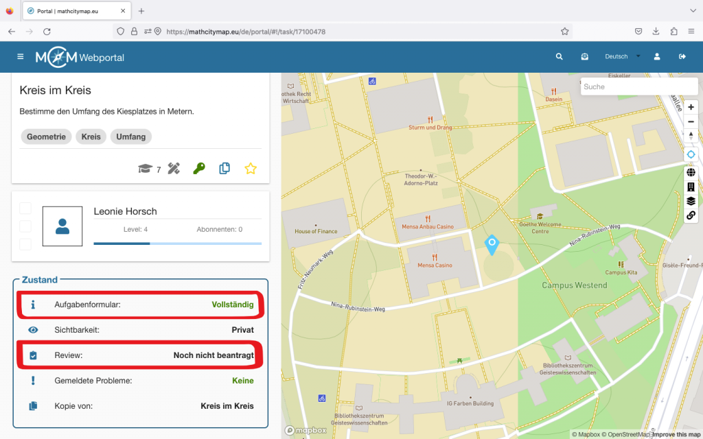 Auch in der App direkt gibt es eine kurze Erklärung zu ihrer Anwendung. Klicke dafür auf das weiße Feld „Wie MathCityMap funktioniert“.