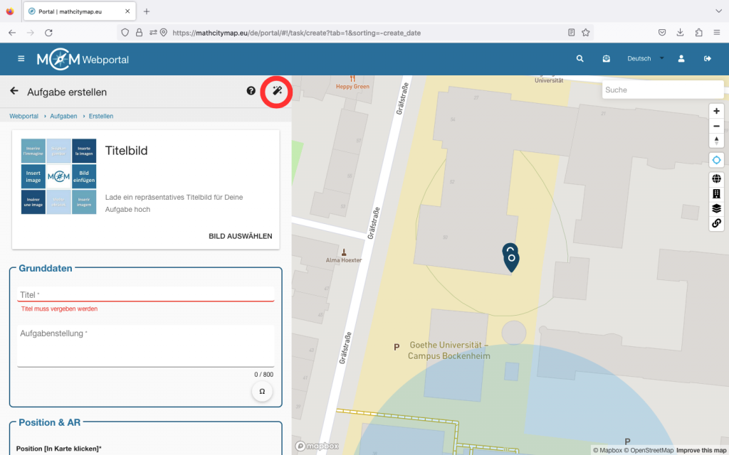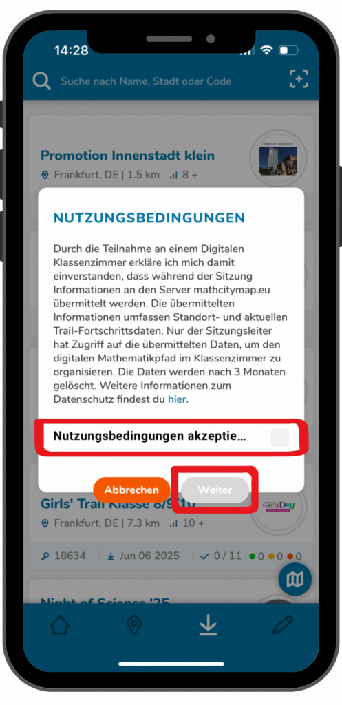 Falls du das MathCityMap Webportal auch über die App nutzen und dadurch deine Trails verwalten möchtest, musst du den Regler bei „Verwaltungsfunktionen“ aktivieren.