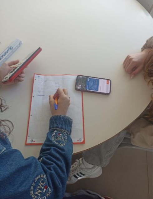 „In Zweiergruppen erstellten die Schülerinnen und Schüler einer 10. Klasse Aufgaben zu verschiedenen Themen. Anfangs hatten sie Schwierigkeiten, nicht bei der Nutzung der App, sondern beim Verfassen der Aufgabenstellungen. Diese Schwierigkeiten konnten mit Hilfe der Lehrerin nach und nach überwunden werden, obwohl sie sie ermutigte, die Aufgaben frei zu gestalten.