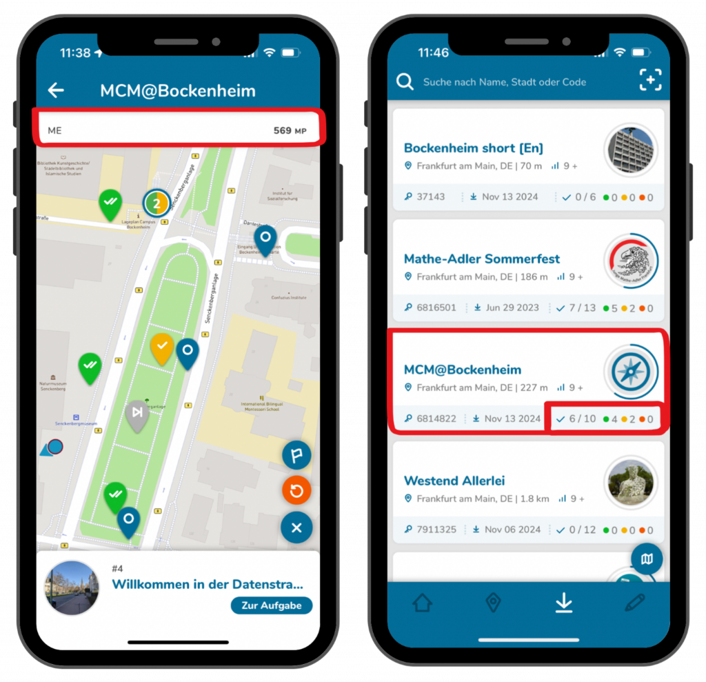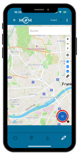 Here you will find the menu fields in list form and can switch to the map view by clicking on the map symbol at the bottom right.