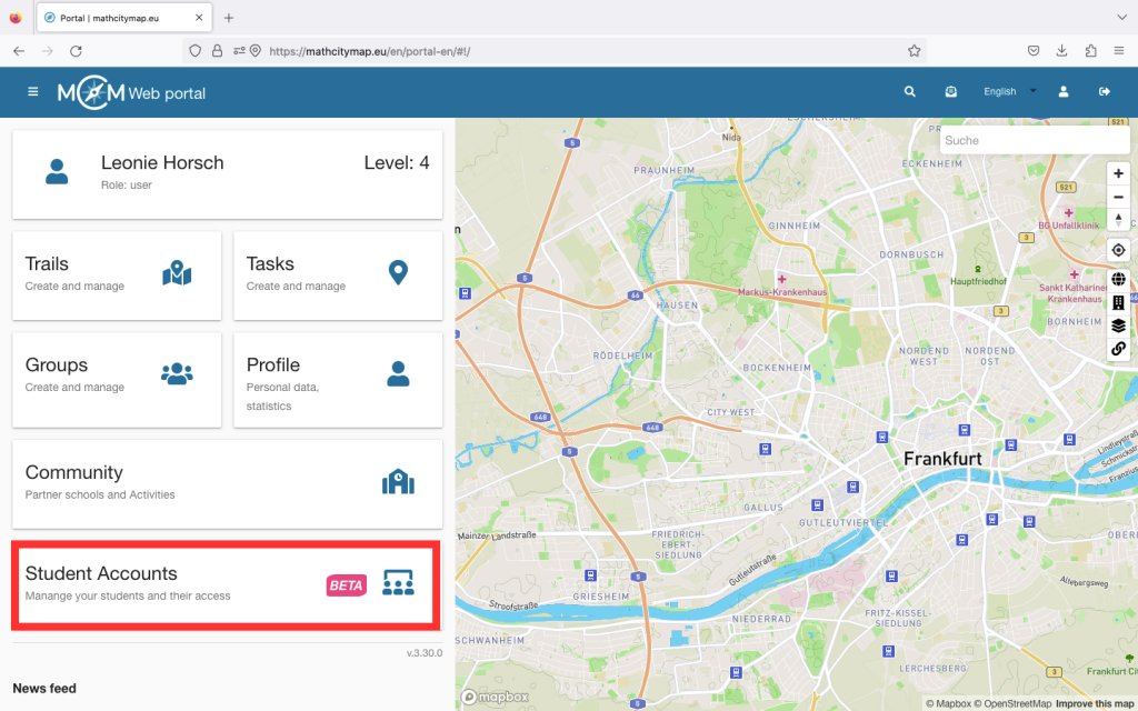 Partner schools that have already been actively working with the student account feature can also be designated as Partner Schools PLUS. Schools that engage intensively with new MathCityMap features will be rewarded with an additional set of measuring instruments and a new plaque for the school building.