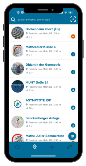 Aquí encontrará los campos del menú en forma de lista y podrá cambiar a la vista del mapa haciendo clic en el símbolo del mapa situado en la parte inferior derecha.