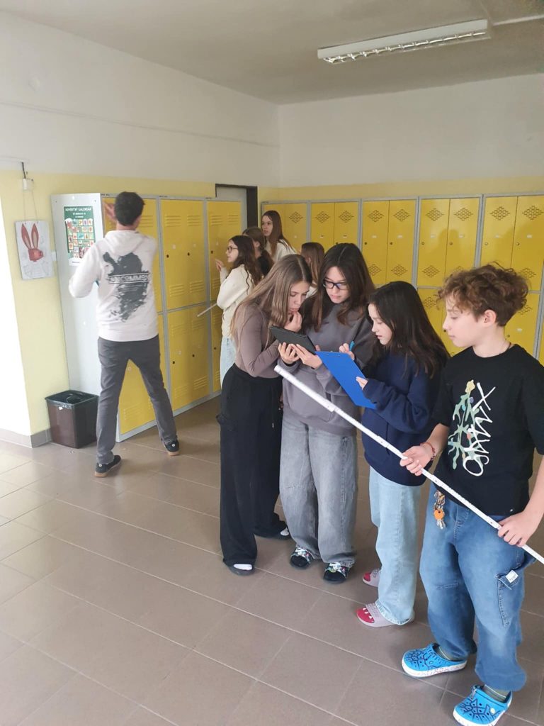 «We conducted one outdoor and two indoor math walks with the students of the seventh grade, each of which include five tasks. The students really enjoyed the tasks, learned how to use a folding ruler, and were able to connect their theoretical knowledge with practical measurements.