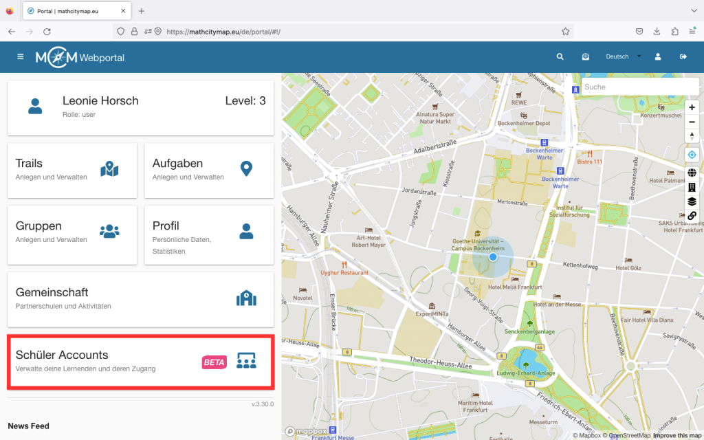 Besuchen Sie die MathCityMap Website und machen Sie sich in den Tutorials mit den Schüler Accounts vertraut.